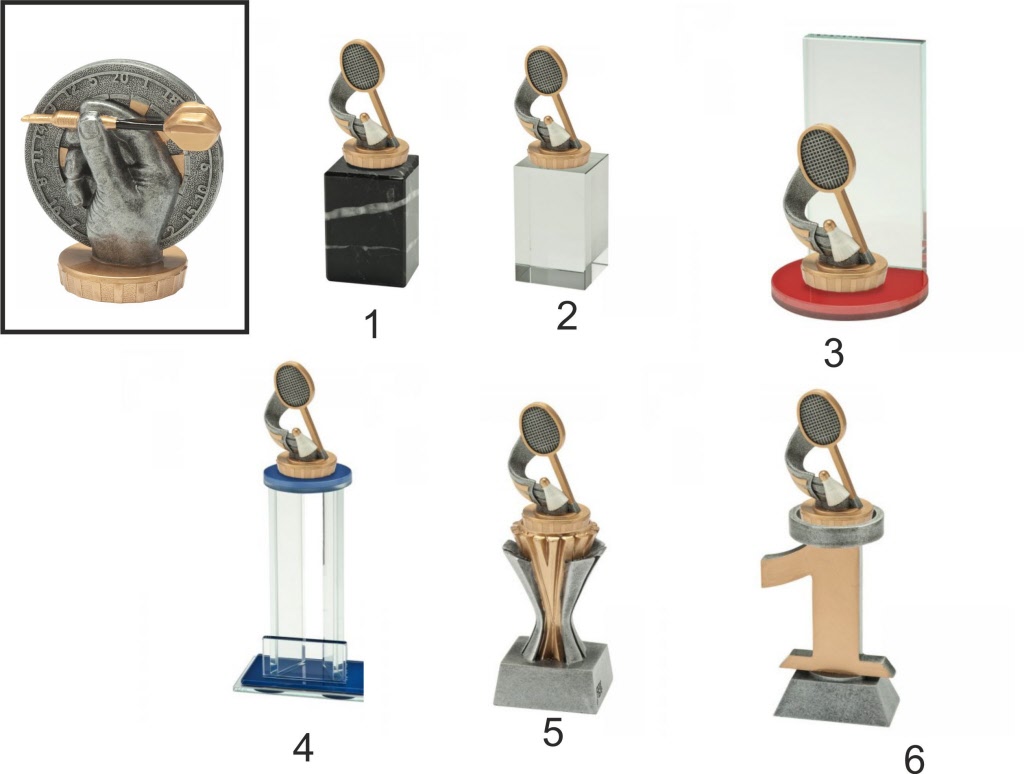 Badminton figuur gemonteerd op diverse prijzen.
