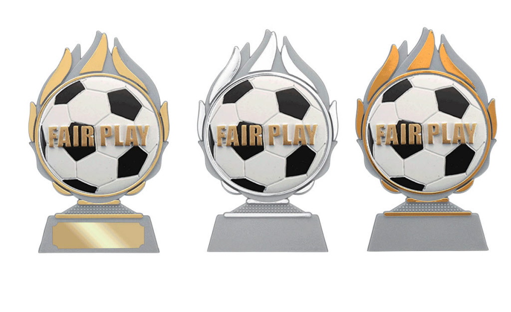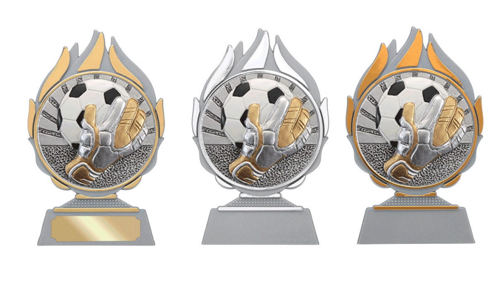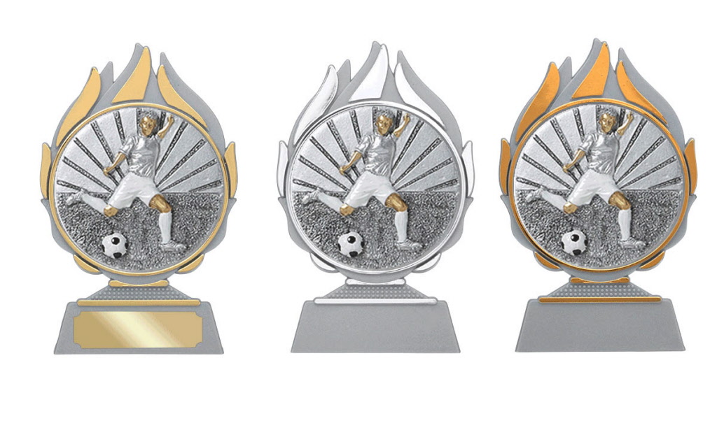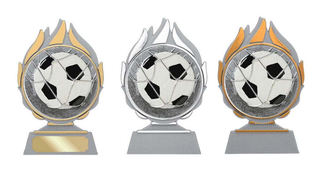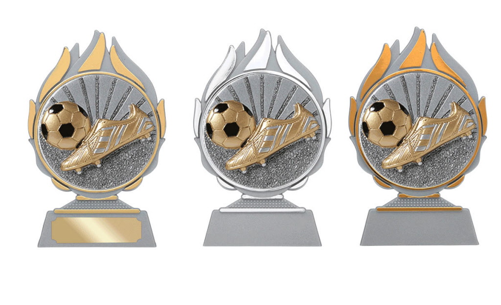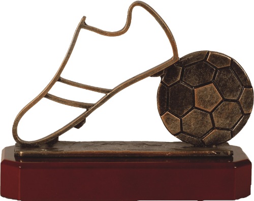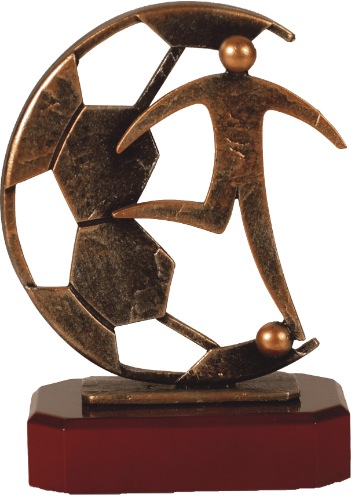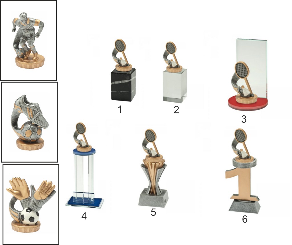 Voetbal figuur gemonteerd op diverse prijzen.