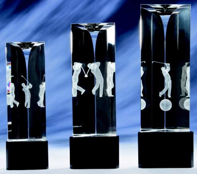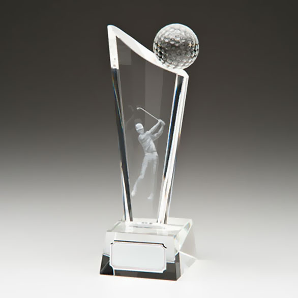 Heel mooi vormgegeven kristalglazen golfaward.