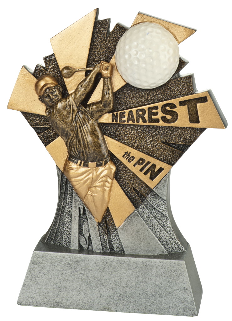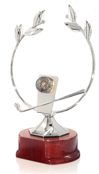 Geheel metalen award op houten sokkel.