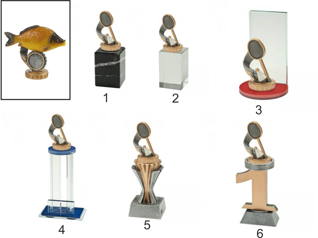 Vis figuur gemonteerd op diverse prijzen.