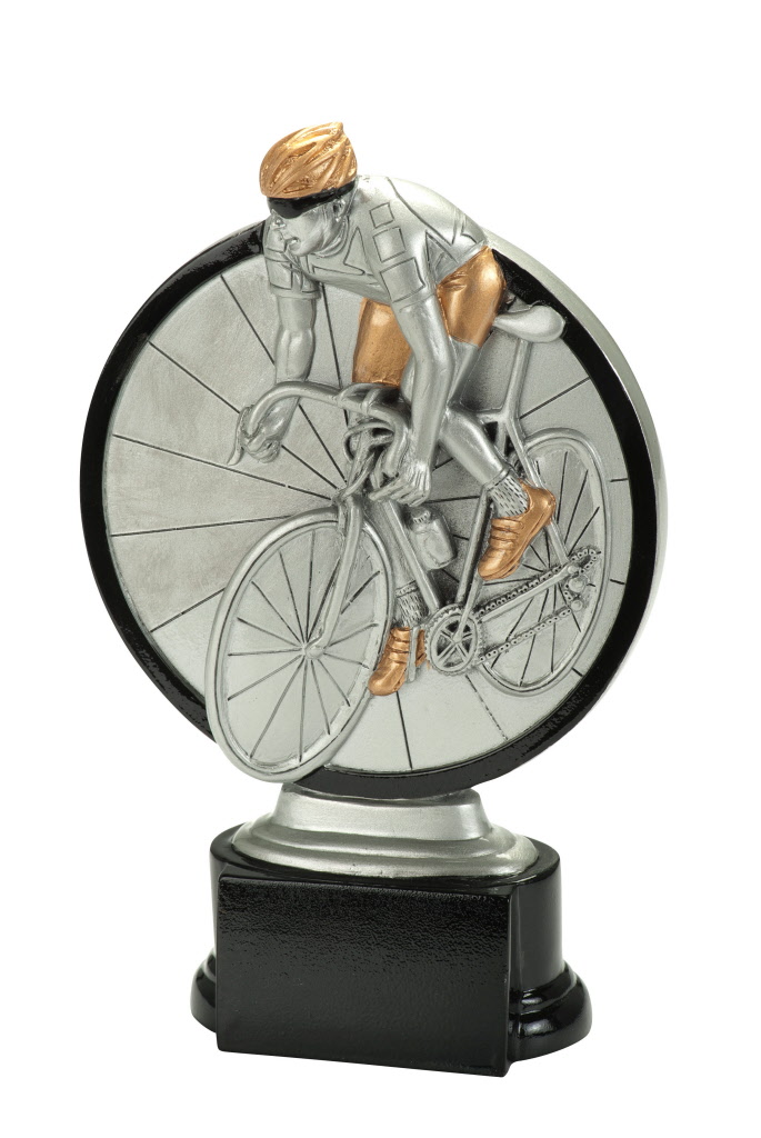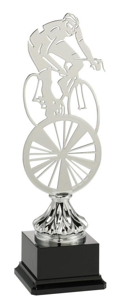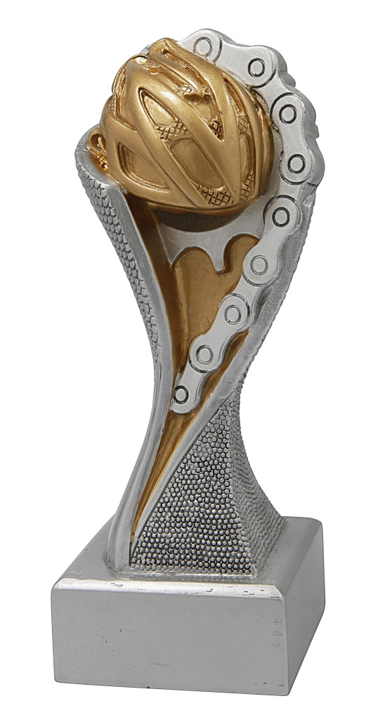 Mooie metalen trofee met goudkleurige afwerking aan de binnenzijde.