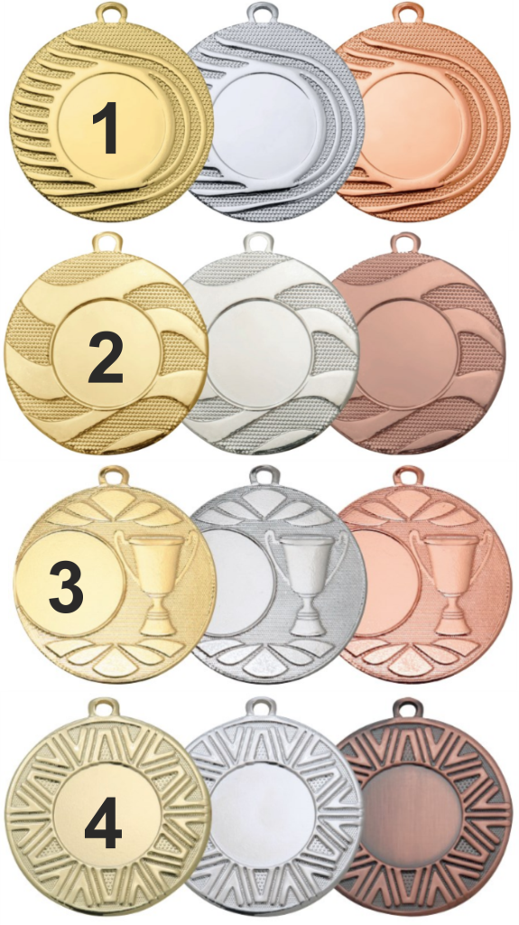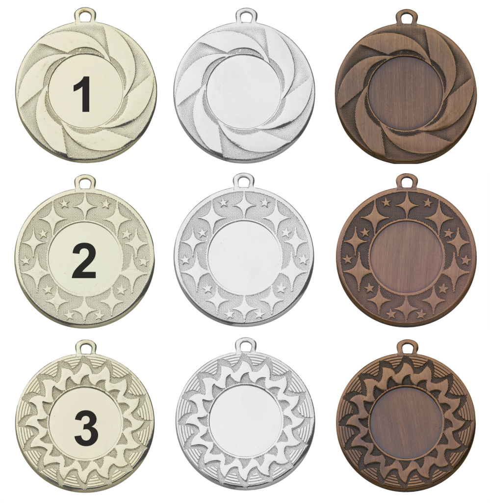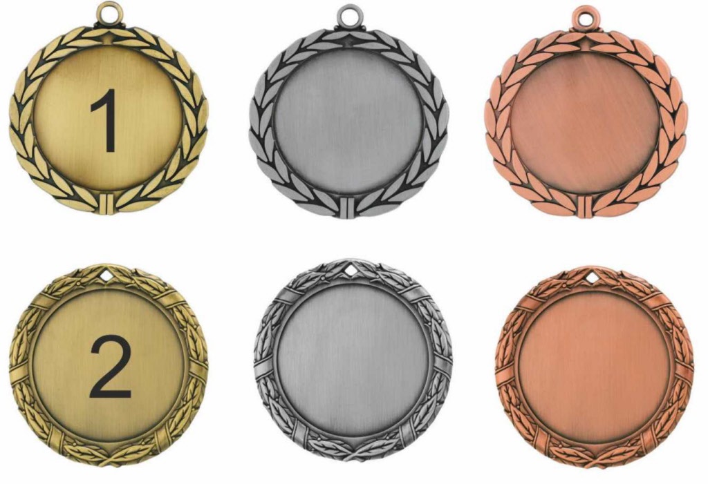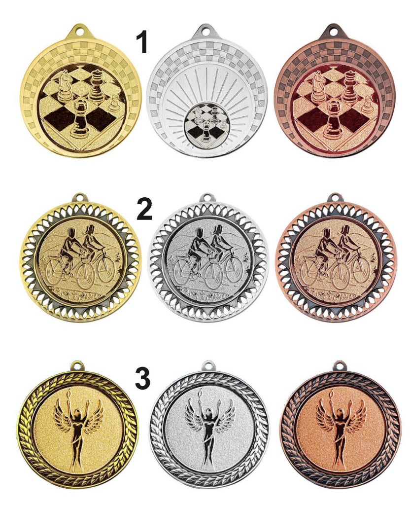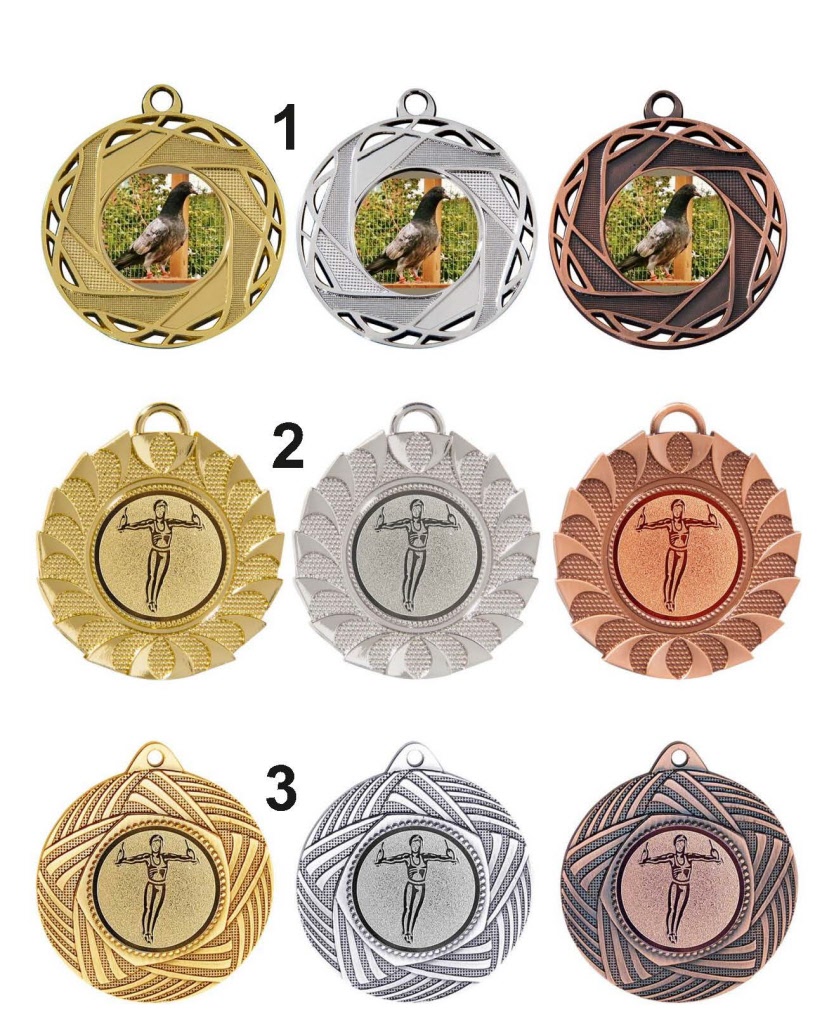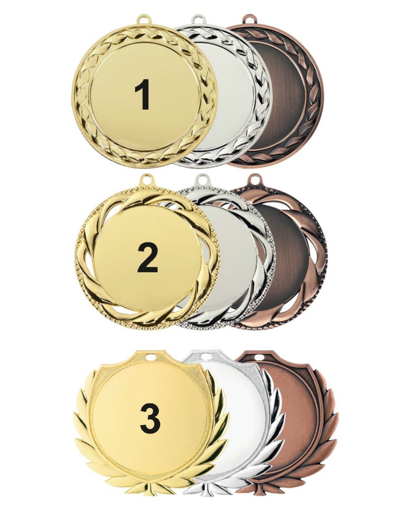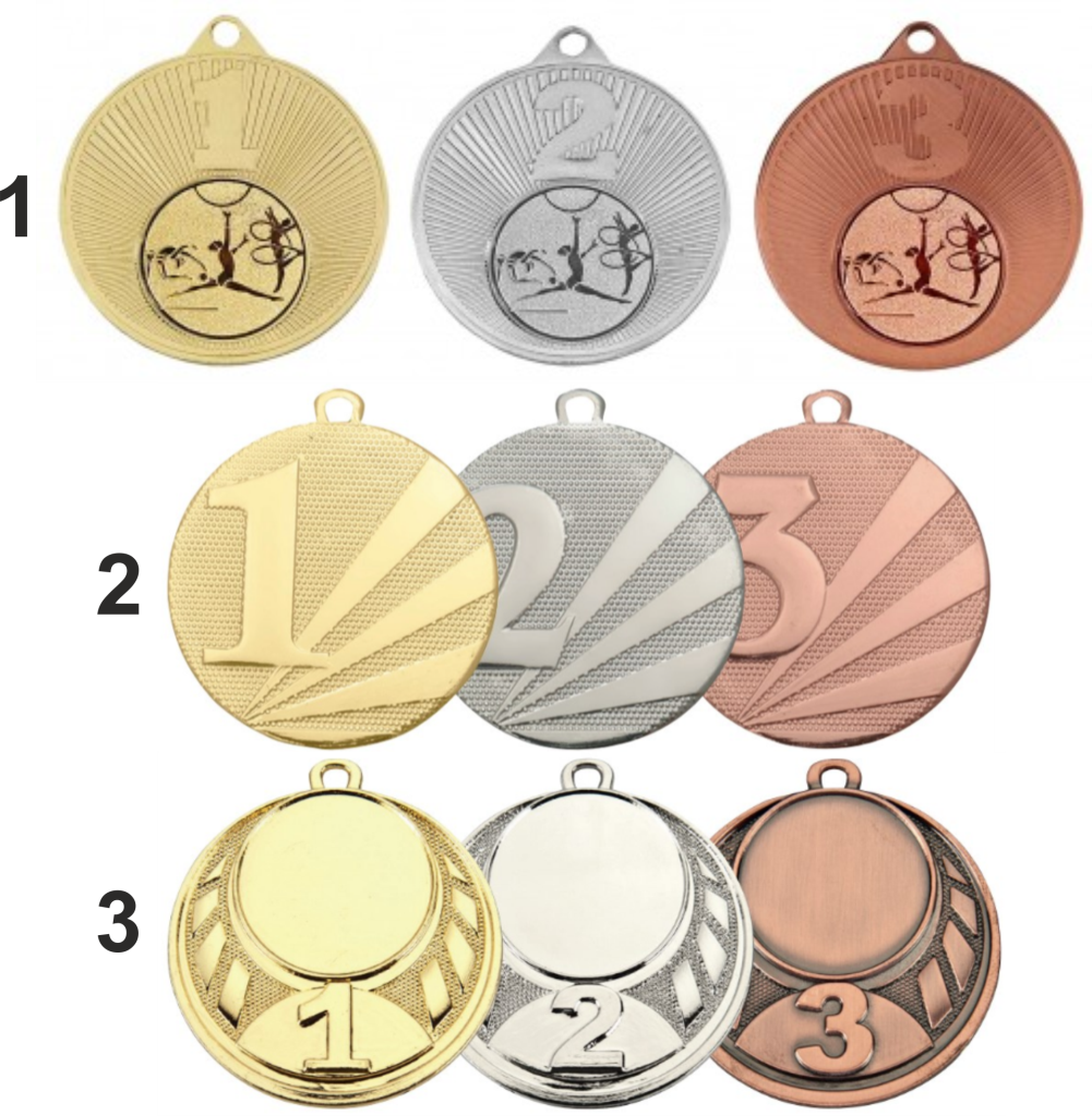 Drie mooie modellen met een 1, 2 en 3 op de medaille