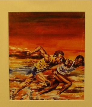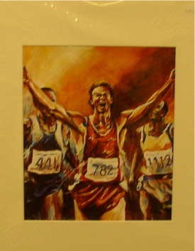 Sportlitho zit in echte aluminium lijst en voorzien van een mooi pass-partout.