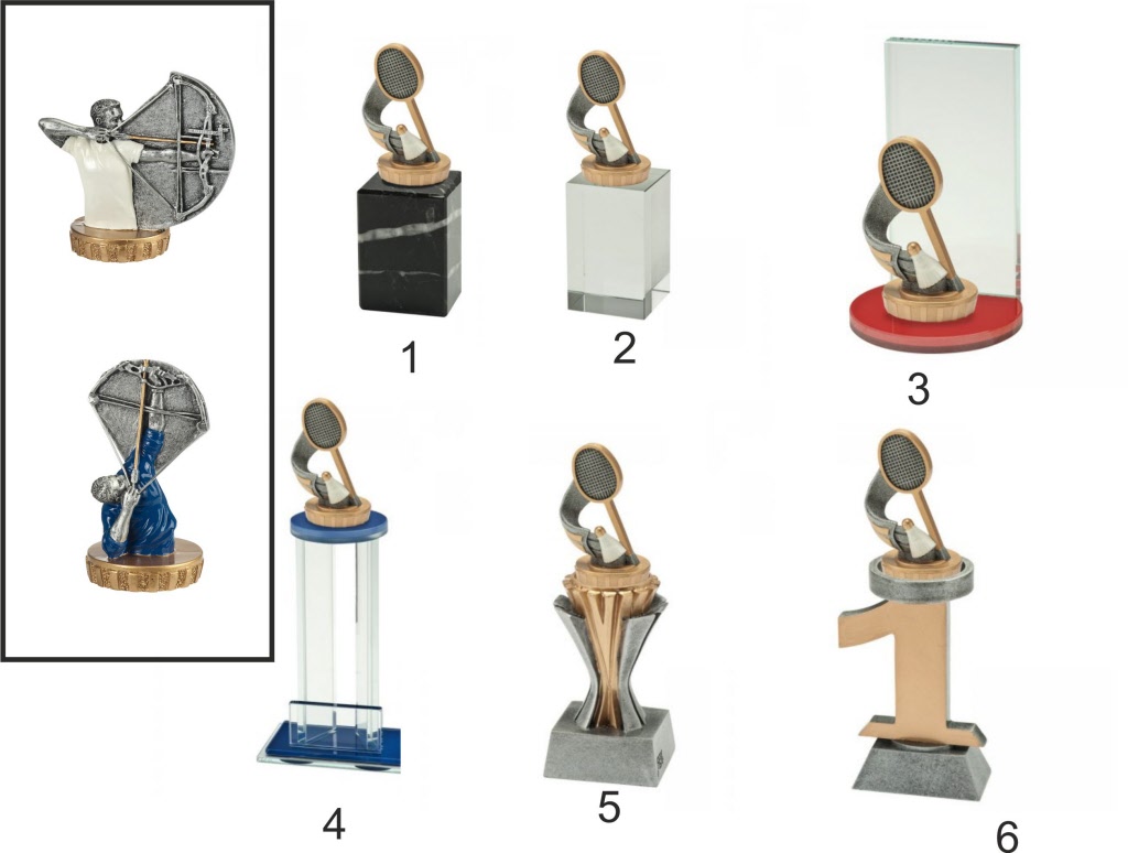 Boogschutter figuur gemonteerd op diverse prijzen.