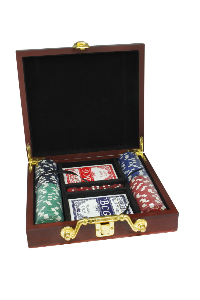 Pokerset in luxe houten kist.